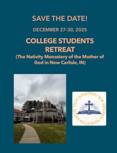 December 27–30, 2025 | The Nativity Monastery of the Mother of God, New Carlisle, IN The Youth Department of the Diocese of New Gracanica–Midwestern America warmly invites all Orthodox college students to