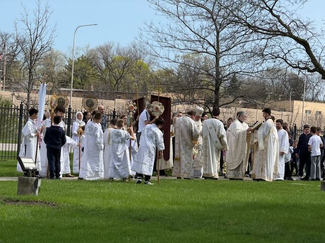 Following the Liturgy, His Eminence Metropolitan Longin led the clergy and the St. Sava Academy students in a solemn Paschal Procession (Litija) around the Cathedral. Carrying icons and banners, the procession moved in honor of the Resurrection of our Lord and Savior Jesus Christ.