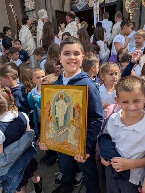 A particularly moving moment occurred during the clergy communion, when the students of St. Sava Academy filled the Cathedral with their voices, singing the beloved hymn “Ljudi likujte.” The sight and sound of our Academy children leading the congregation in praise brought a palpable sense of Paschal joy to everyone in attendance, serving as a beautiful reminder of the importance of passing our traditions to the next generation.