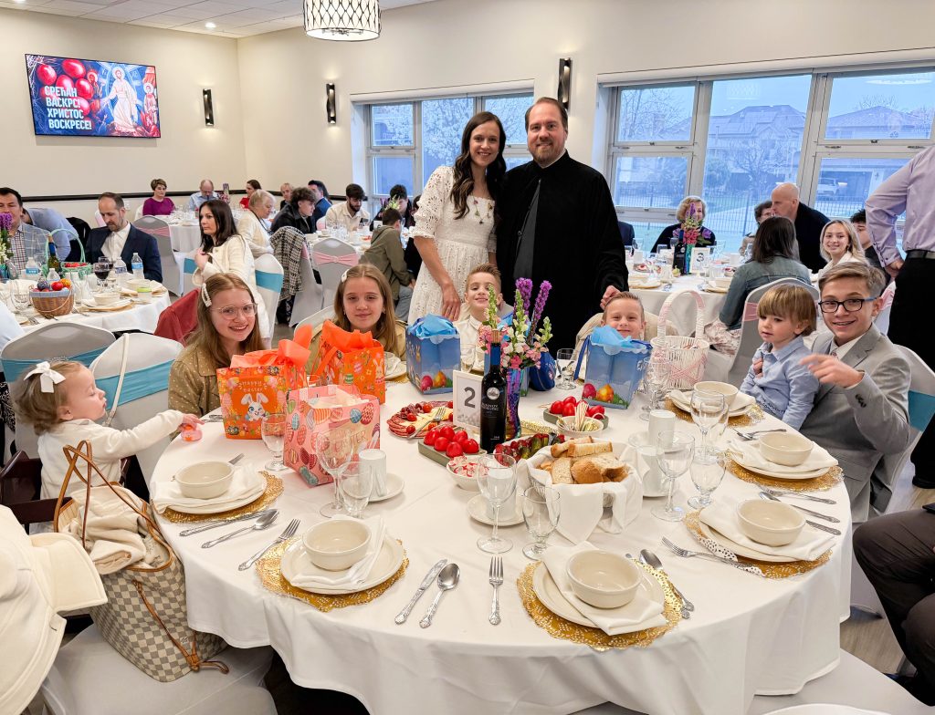 Following the Divine Liturgy, the celebration continued with the traditional Easter Slava Banquet. His Grace Bishop Serafim remained with the community, offering words of encouragement and joy, and personally greeting many of the faithful. The banquet hall was filled with warmth, fellowship, and the hospitality that defines our parish life.