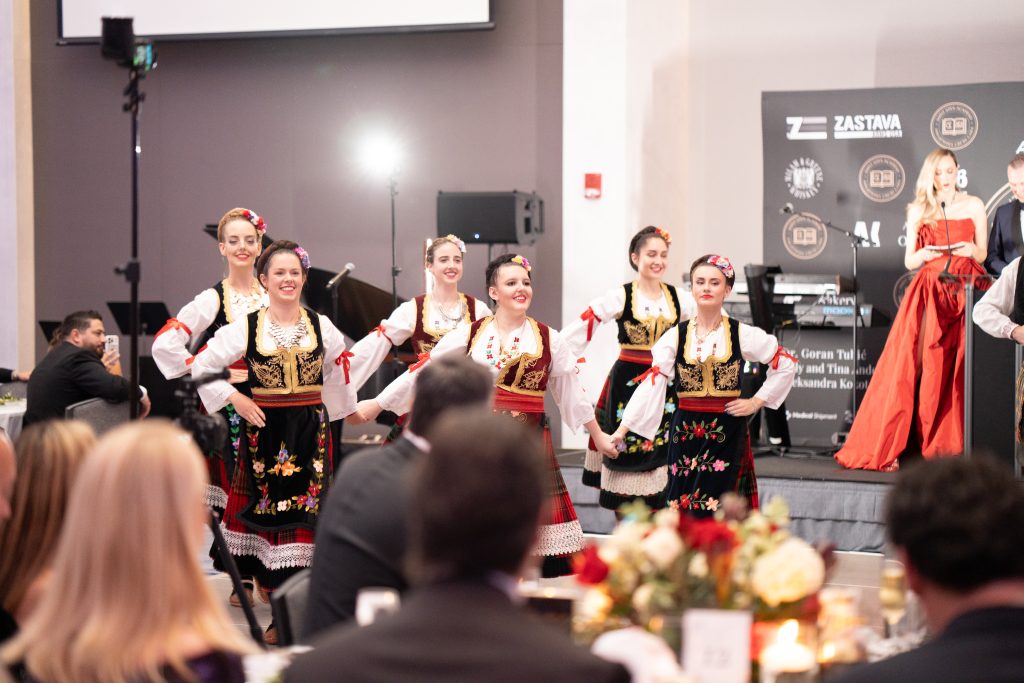 The evening was filled with art, inspiration, and fellowship. Guests enjoyed performances by world-class artists, including Grammy-nominated violinist Philippe Quint, soprano Marija Jelić, Dragana Rakićević, and Mile Vujnović, as well as ensembles of traditional Serbian music and dance. Among the speakers were Dr. Branko Bojović, renowned plastic surgeon; Miss Illinois Nikolina Vujčić; conductor and financial advisor Vladimir Kulenović; and Vlado Zrnić of the Serbian American Student-Athletes Association. The program was warmly and elegantly hosted by Jelena Gavrilović, a well-known Serbian actress and singer, and George Petković, Vice President of Air Serbia for the Americas. The gala also featured an exclusive silent auction with luxury items and unique cultural experiences, while the formal dinner provided an opportunity to celebrate the achievements of the students and the Academy’s vision for growth.