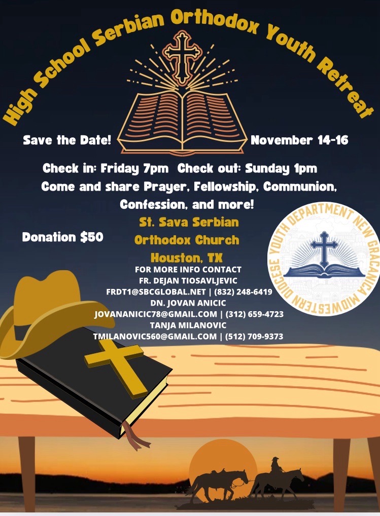 With great joy, the Youth Department of the Midwest Diocese of the Serbian Orthodox Church announces the first-ever Orthodox youth retreat in Texas!