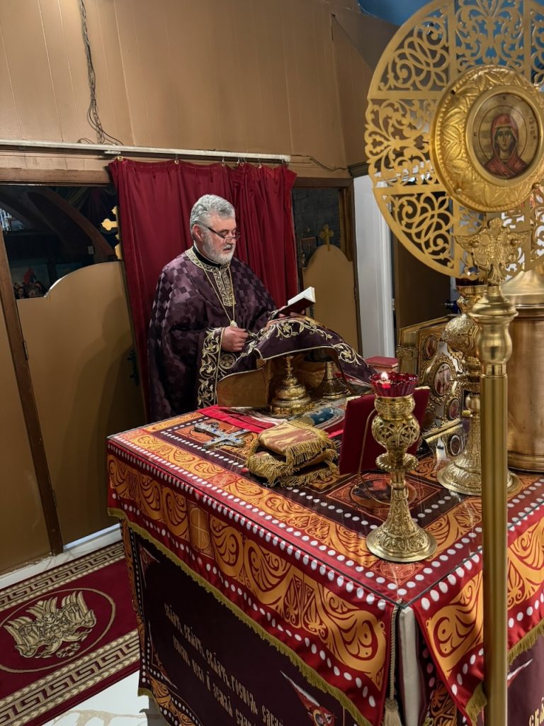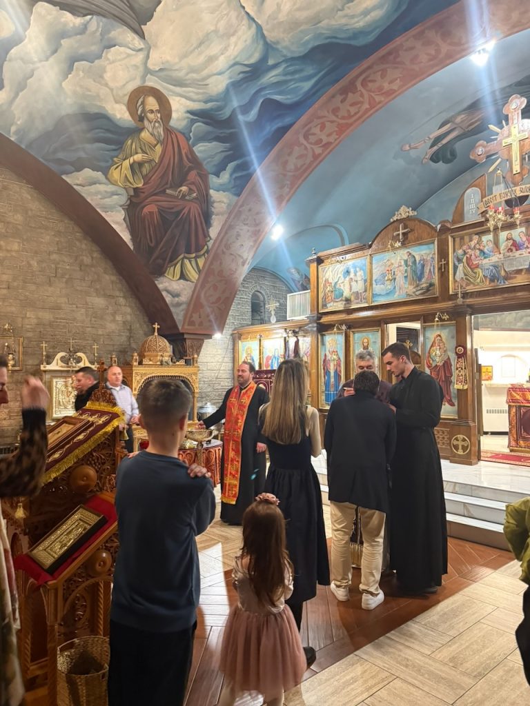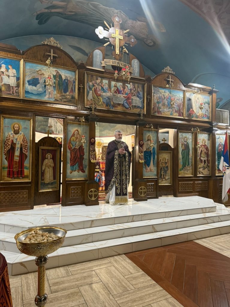 The Holy Liturgy was served by the Very Reverend Protopresbyter Dobrivoje Milunovic, who addressed the gathered faithful with an inspiring homily about God as light and man as a seeker of that light. The theme of his word was deeply connected to the Second Sunday of Lent, dedicated to St. Gregory Palamas, the great 14th-century hesychast and theologian of light.